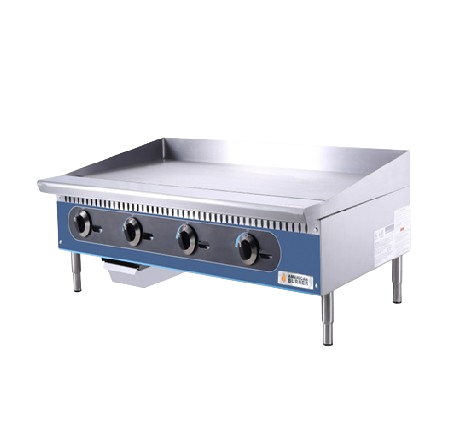 The E-RQP-48 Gas Grill is a high-capacity professional griddle built to handle the demands of busy commercial kitchens. Featuring four powerful American burners, it provides exceptional heat control and even temperature distribution for consistent results.